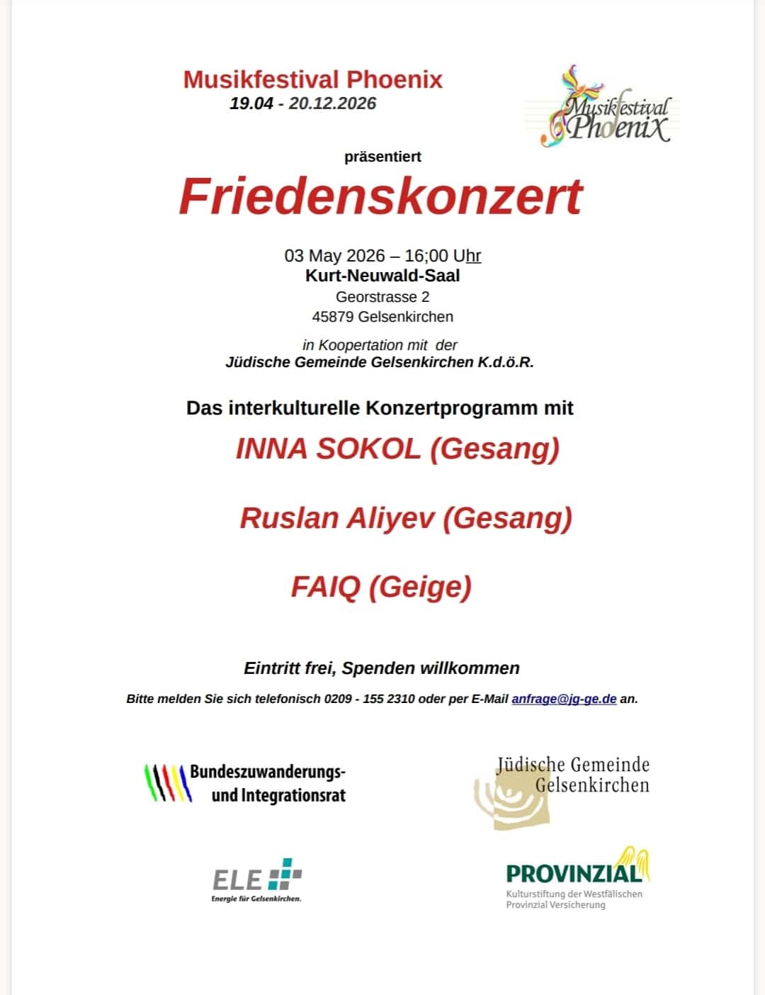 Friedenskonzert am 3. Mai 2026 um 14:00